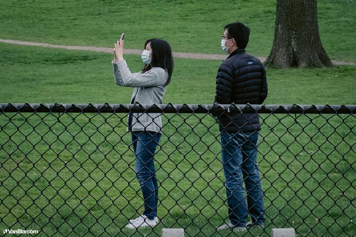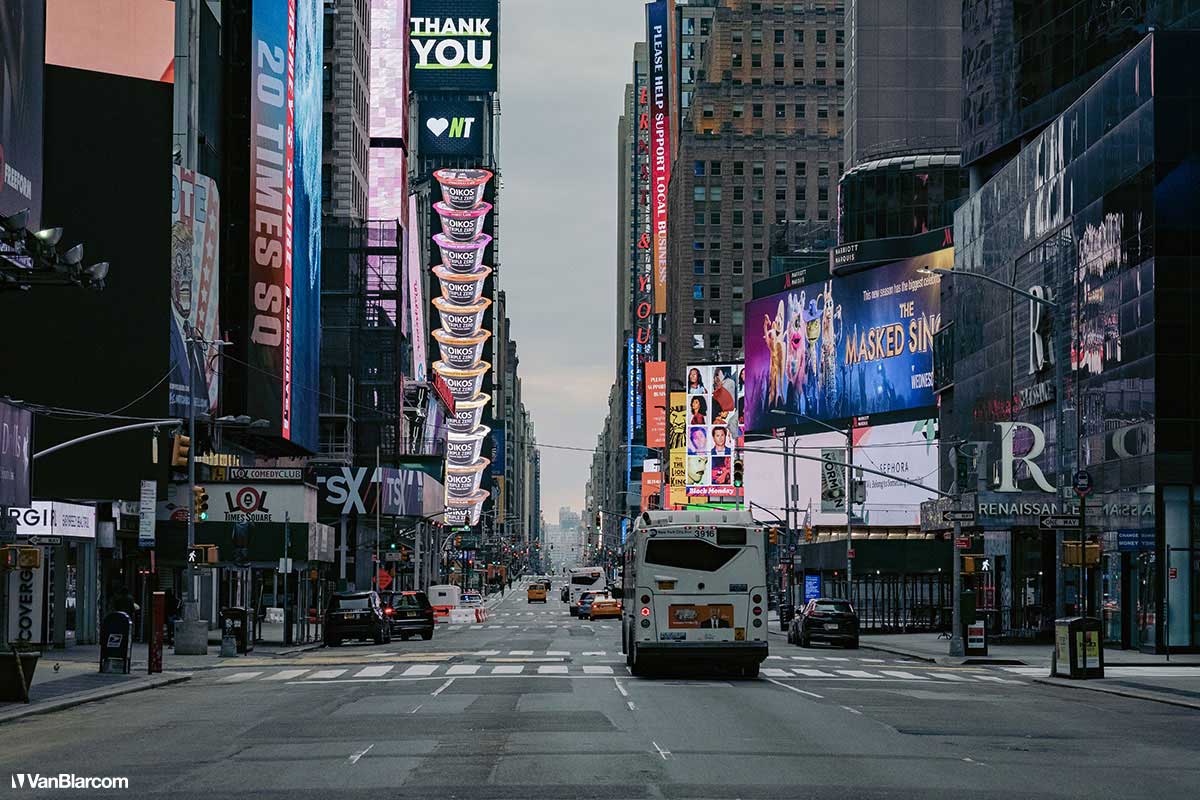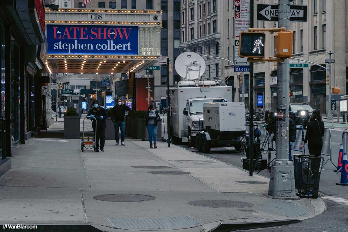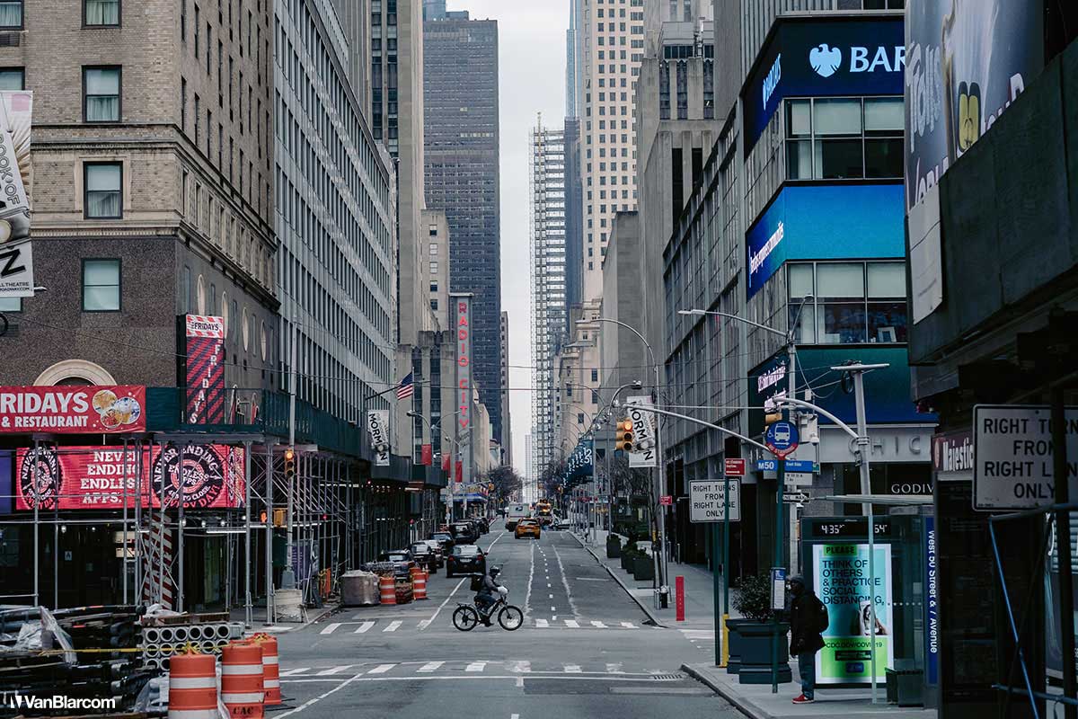 On Sunday April 5, 2020 I drove into midtown Manhattan in order to document our current situation in the heart of the pandemic. April 5 was the first day masks were being mandated in many cities, and it was also a 70-degree, spring-like day. Central Park had quite a few people out walking and exercising, and social distancing but, for the most part, the city was silent. Not a soul on 5th Ave. No one in Rockefeller Center. A few people walking around and biking in Times Square. It was eerie to see the city like this, but it was also a testament to how seriously everyone is taking this outbreak. For other use, high resolution files, or professional prints please contact dave@vanblar.com