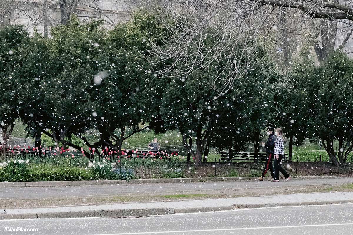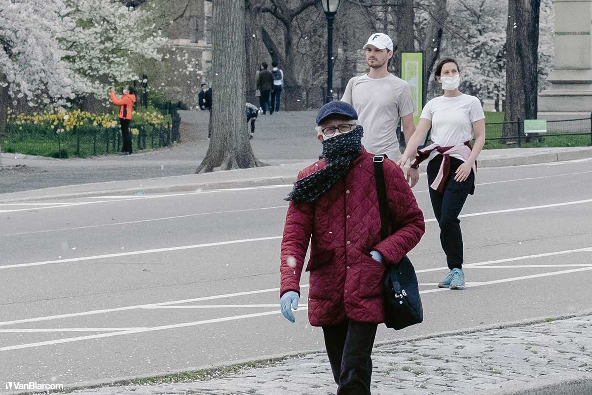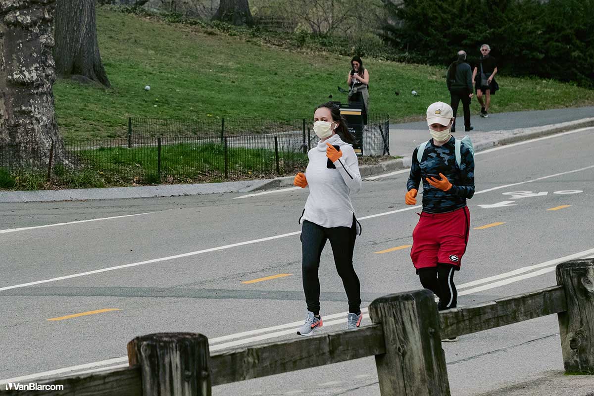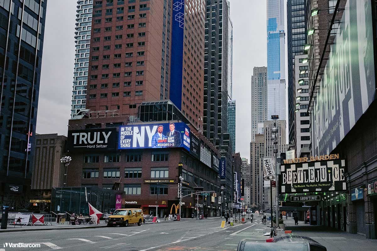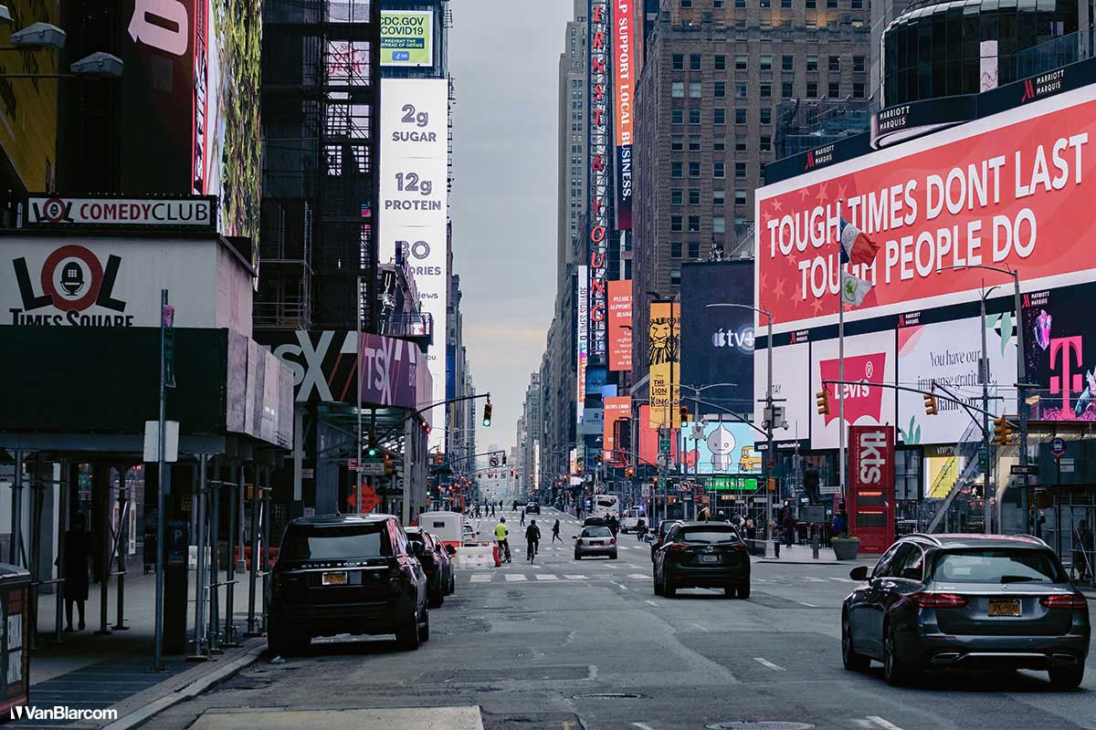 On Sunday April 5, 2020 I drove into midtown Manhattan in order to document our current situation in the heart of the pandemic. April 5 was the first day masks were being mandated in many cities, and it was also a 70-degree, spring-like day. Central Park had quite a few people out walking and exercising, and social distancing but, for the most part, the city was silent. Not a soul on 5th Ave. No one in Rockefeller Center. A few people walking around and biking in Times Square. It was eerie to see the city like this, but it was also a testament to how seriously everyone is taking this outbreak. For other use, high resolution files, or professional prints please contact dave@vanblar.com