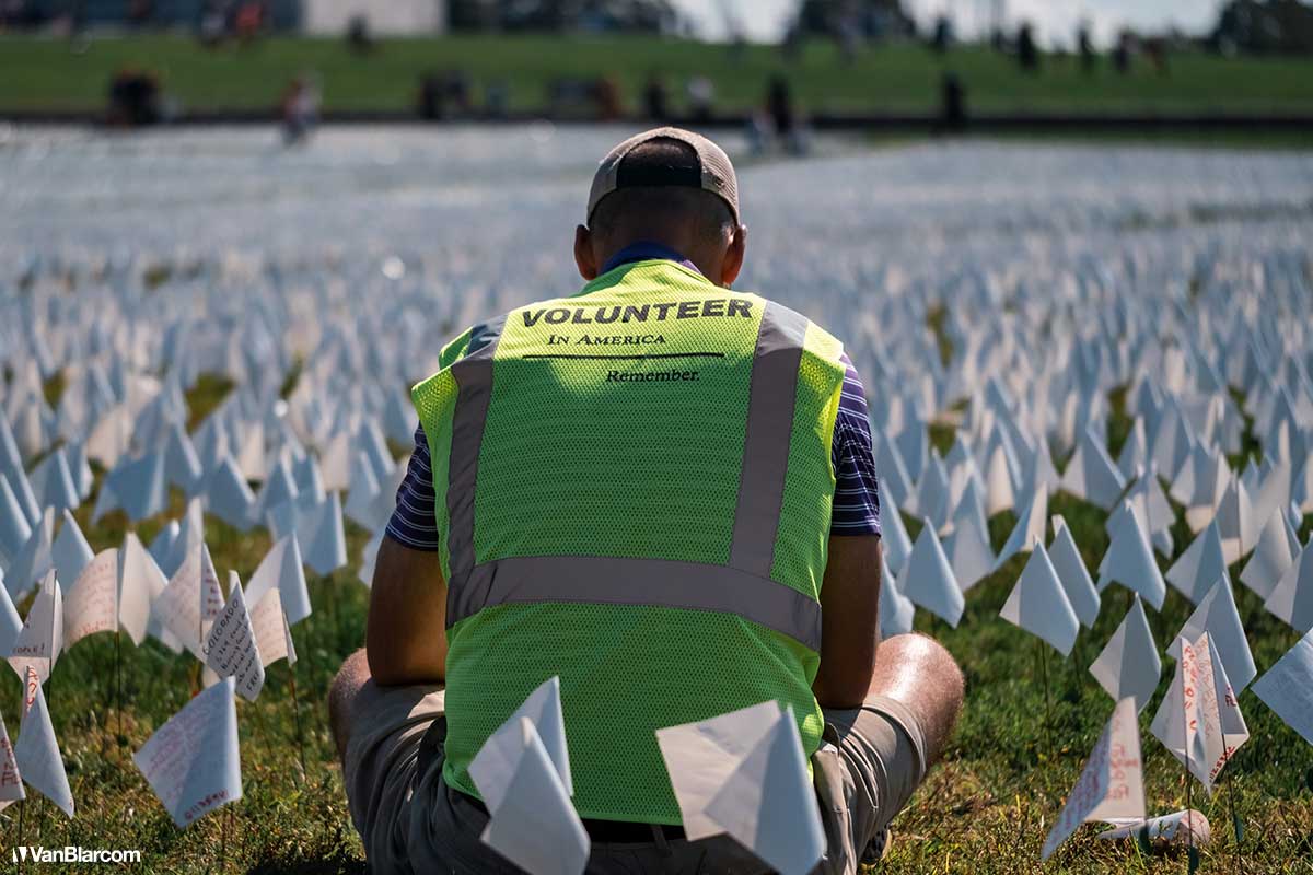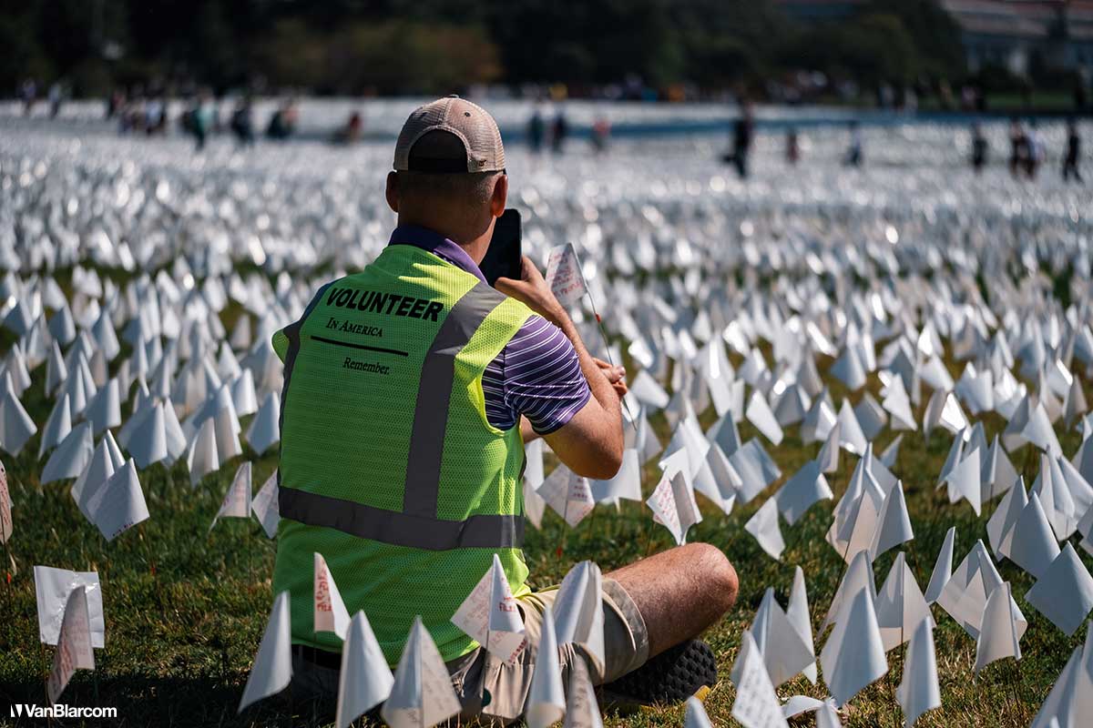 October 2021 - I took a ride to DC this weekend specifically to see Suzanne Firstenberg’s ‘In America’ installation. I originally intended to simply view and photograph the project, not expecting to connect much to the deeper meaning behind it. As I watched my mother fill out a memorial flag for her friend (image 3) with her hand shaking and eyes welling with tears, I found that deeper connection. I was no longer looking simply at white flags planted on this site, I was seeing people - each with a story, a life, a legacy. It is a truly beautiful and powerful memorial.