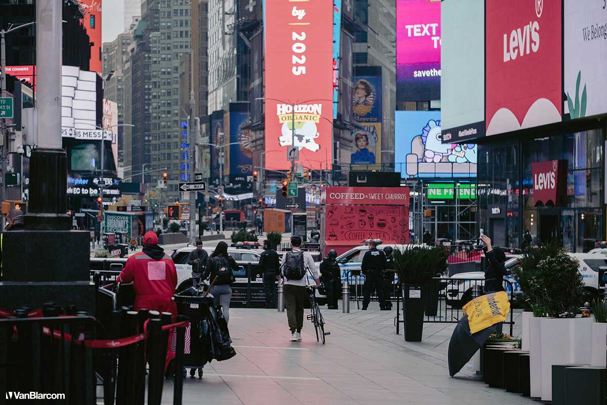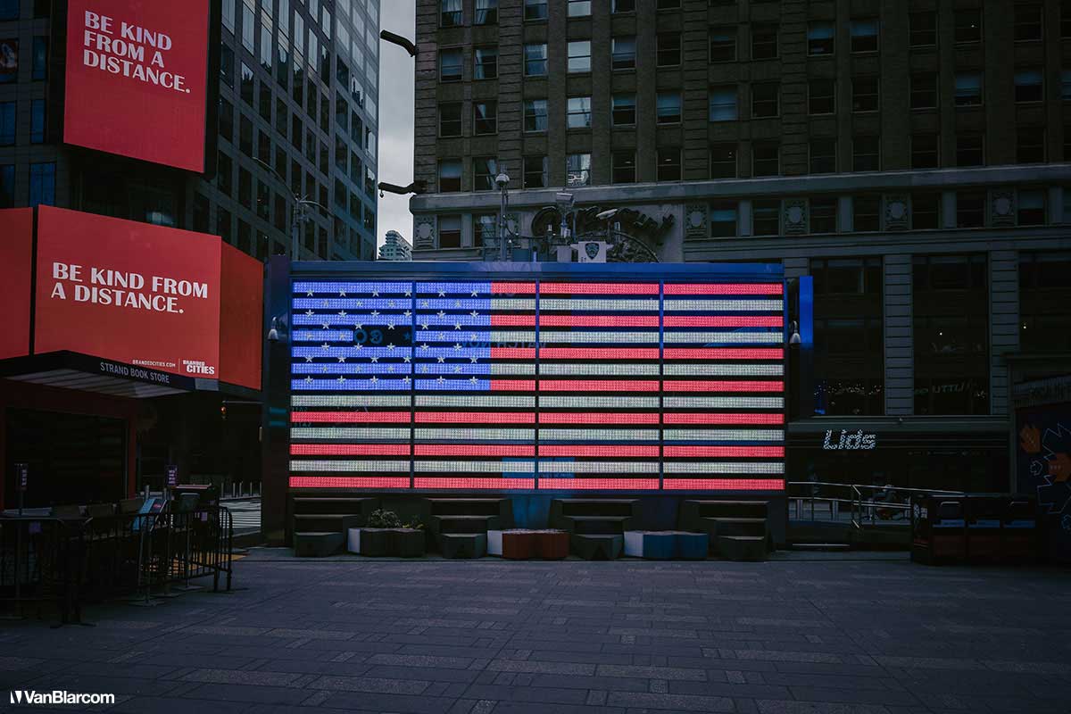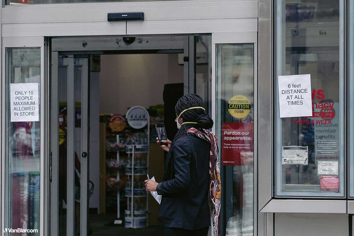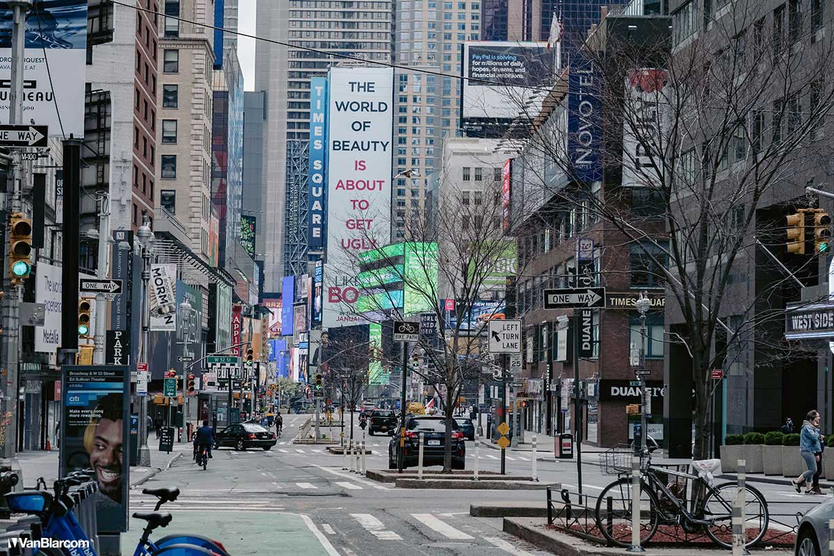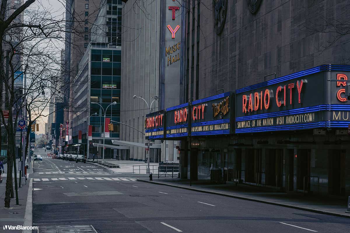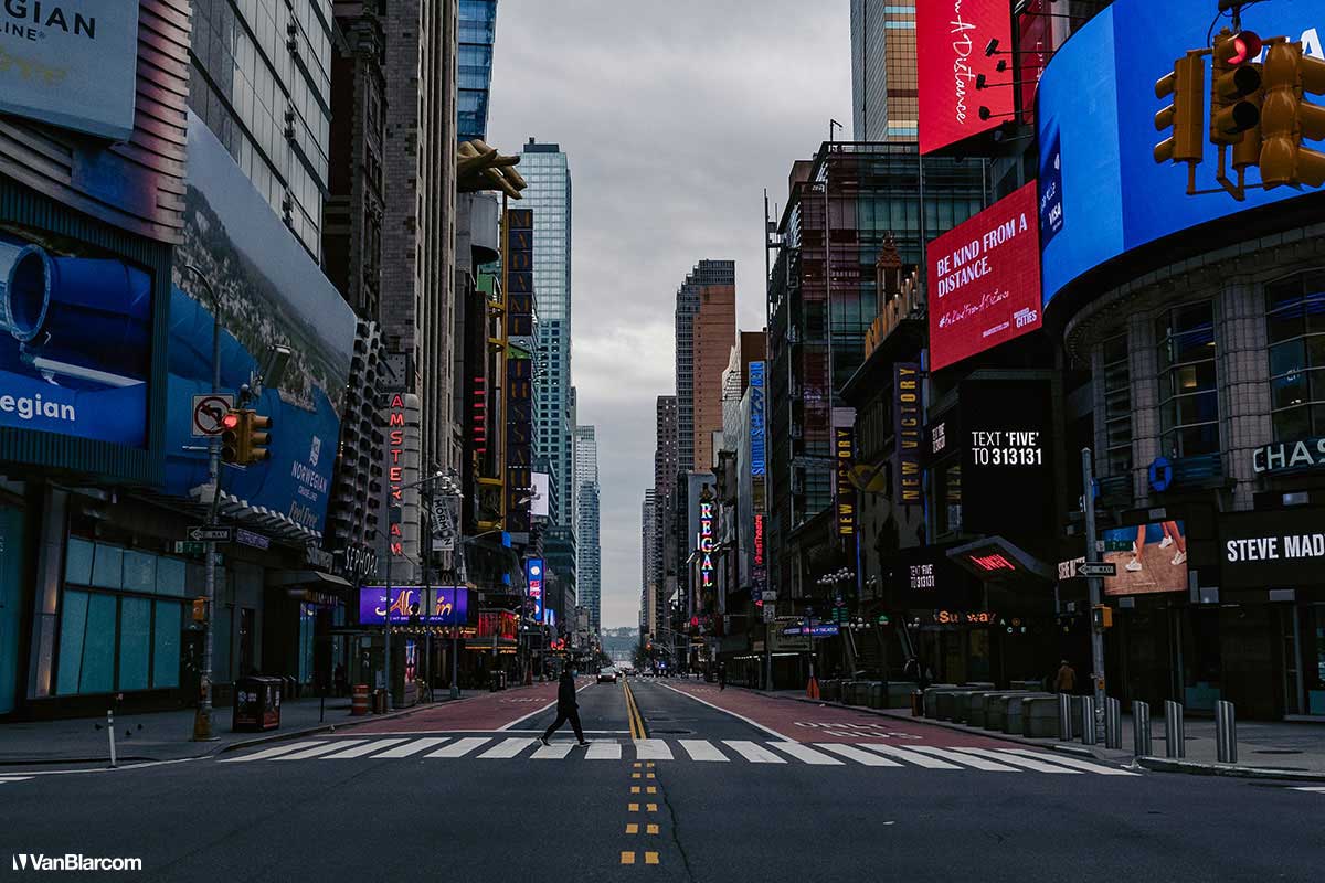On Sunday April 5, 2020 I drove into midtown Manhattan in order to document our current situation in the heart of the pandemic. April 5 was the first day masks were being mandated in many cities, and it was also a 70-degree, spring-like day. Central Park had quite a few people out walking and exercising, and social distancing but, for the most part, the city was silent. Not a soul on 5th Ave. No one in Rockefeller Center. A few people walking around and biking in Times Square. It was eerie to see the city like this, but it was also a testament to how seriously everyone is taking this outbreak. For other use, high resolution files, or professional prints please contact dave@vanblar.com